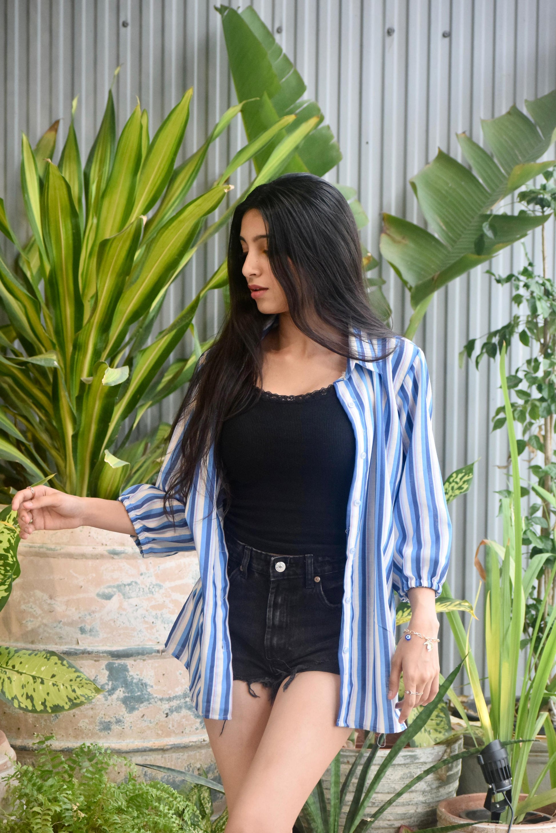A relaxed essential with timeless stripes and summer spirit, this breathable linen shirt transitions effortlessly from polished to playful. Wear it buttoned-up for easy elegance or layer it open over a bralette or Crop top for vacation-ready ease.