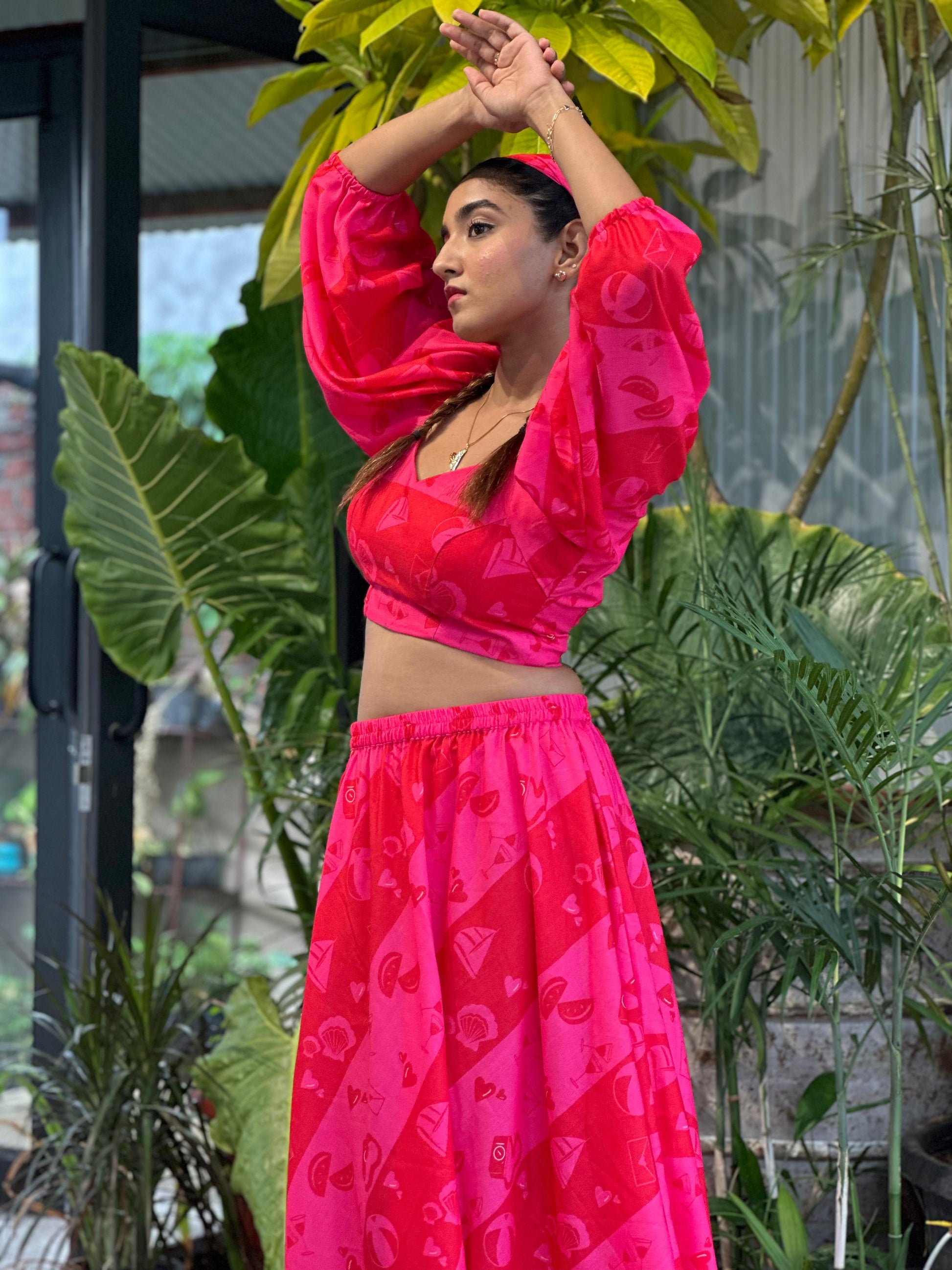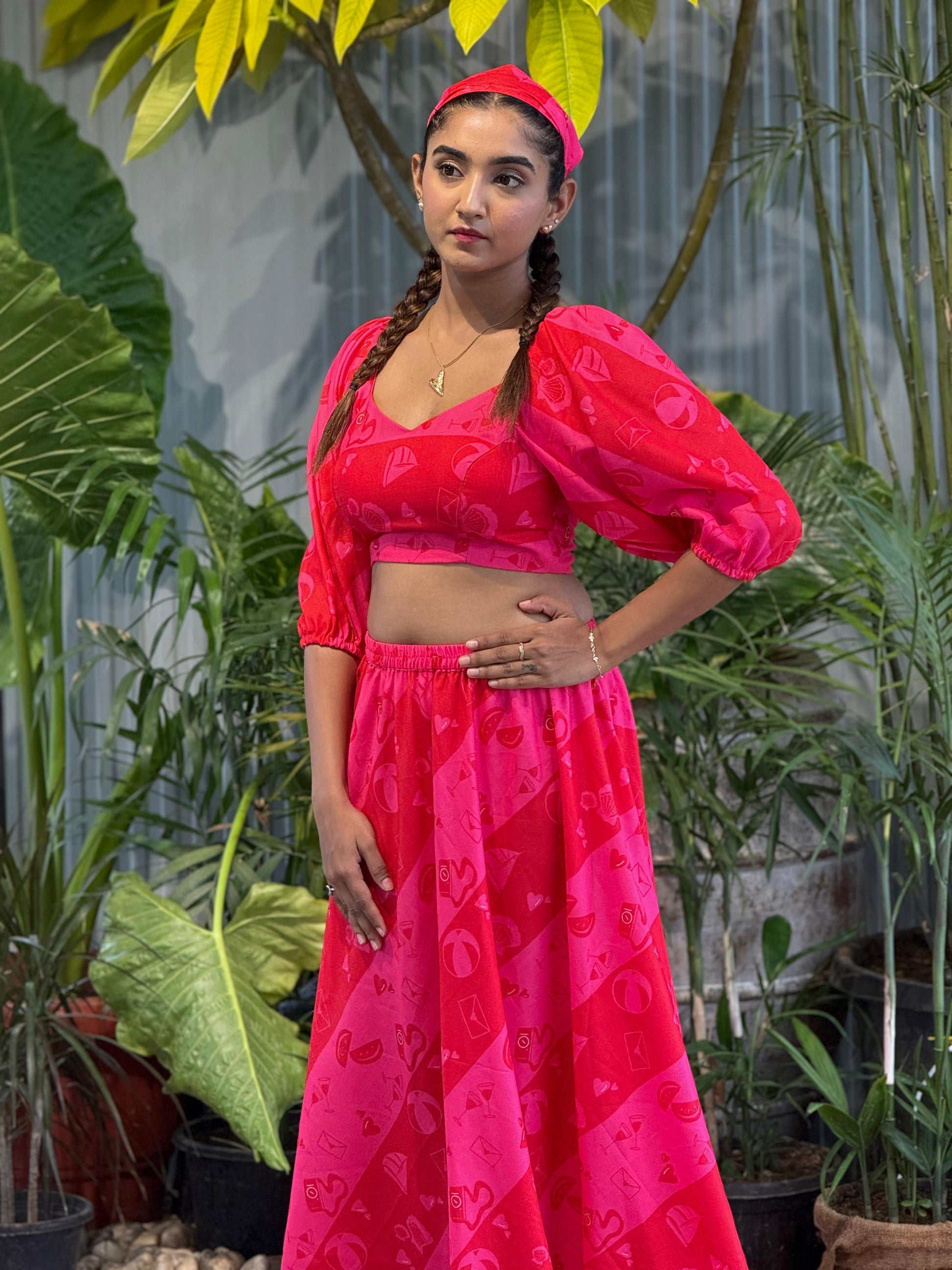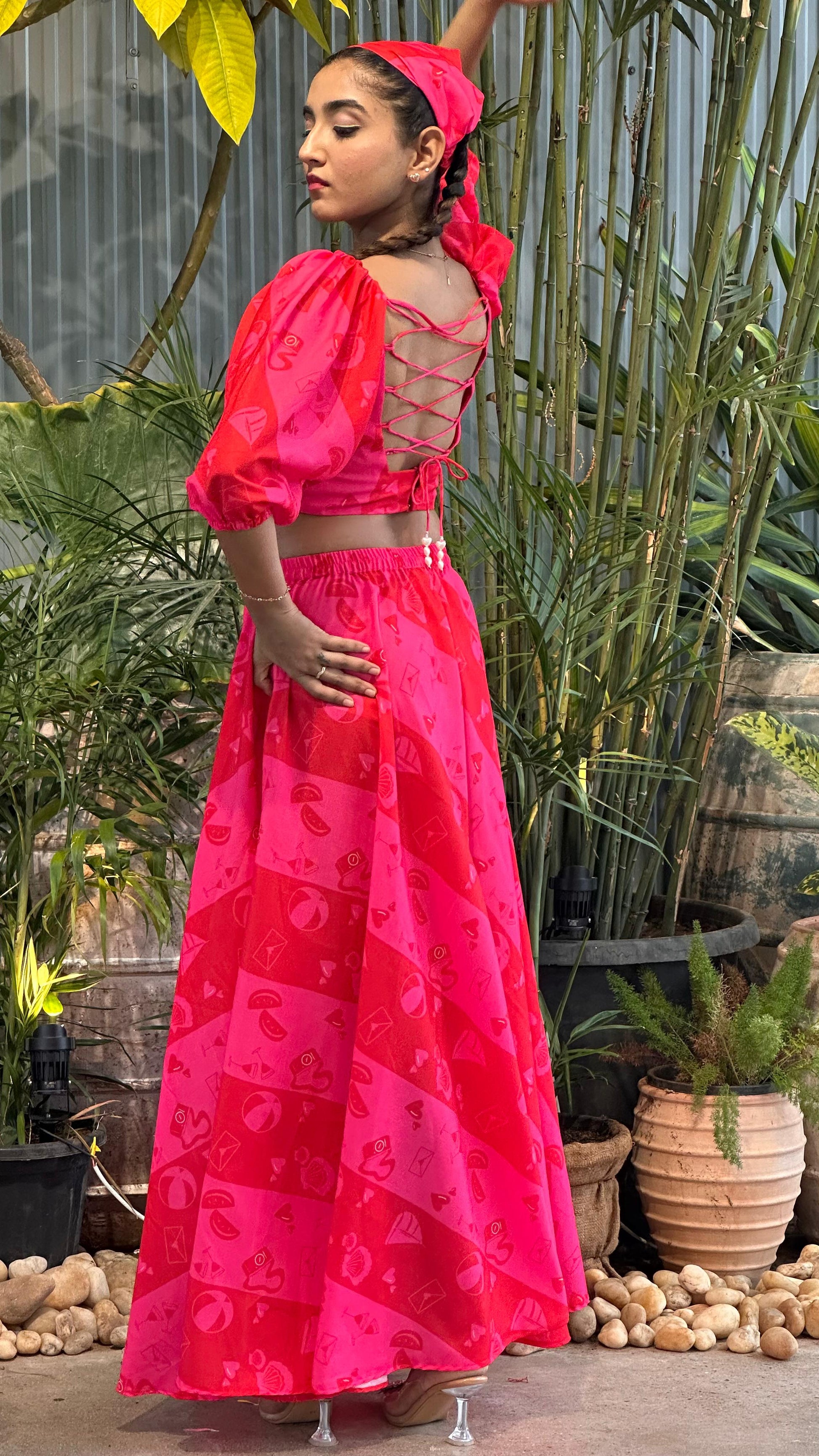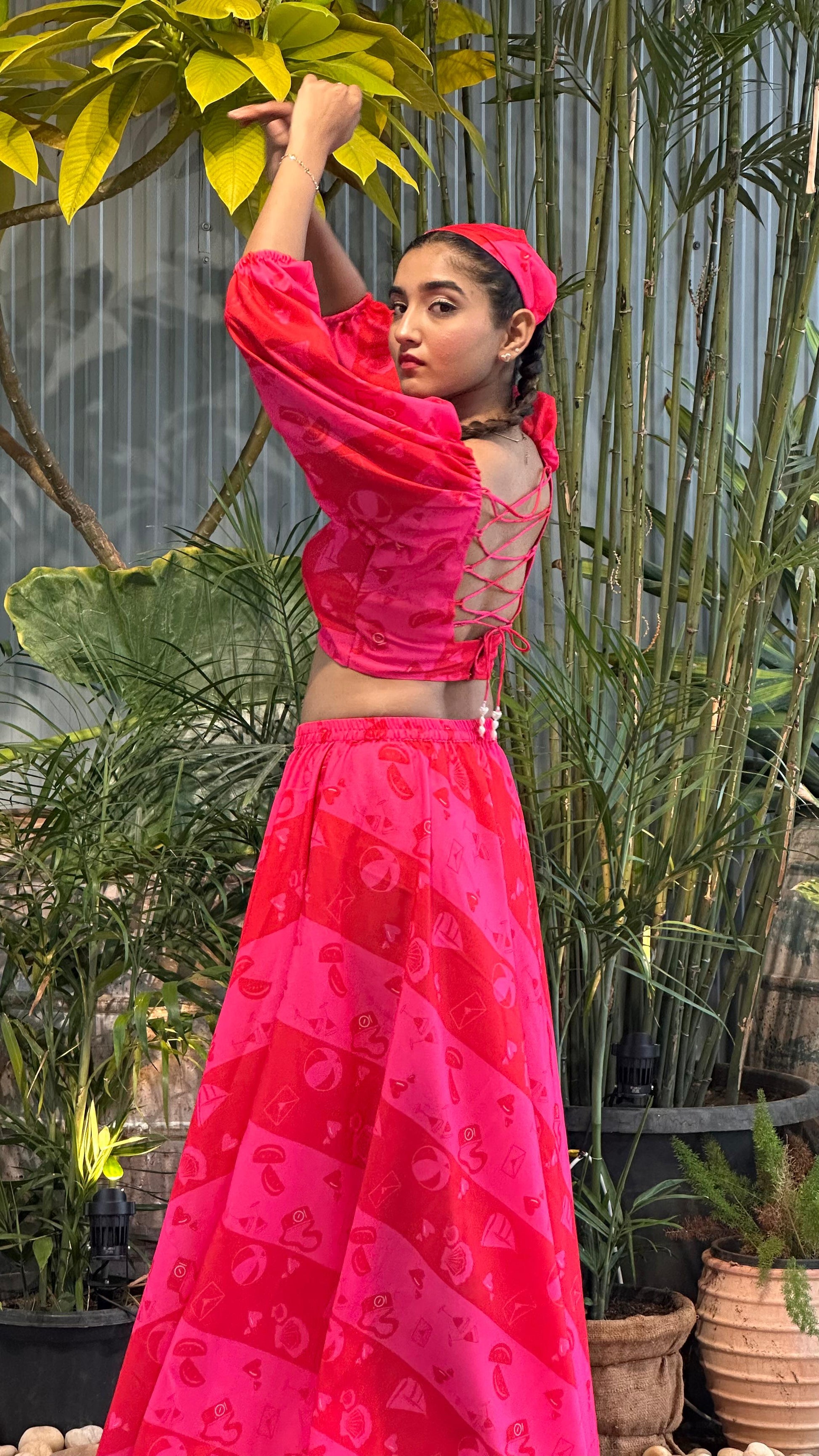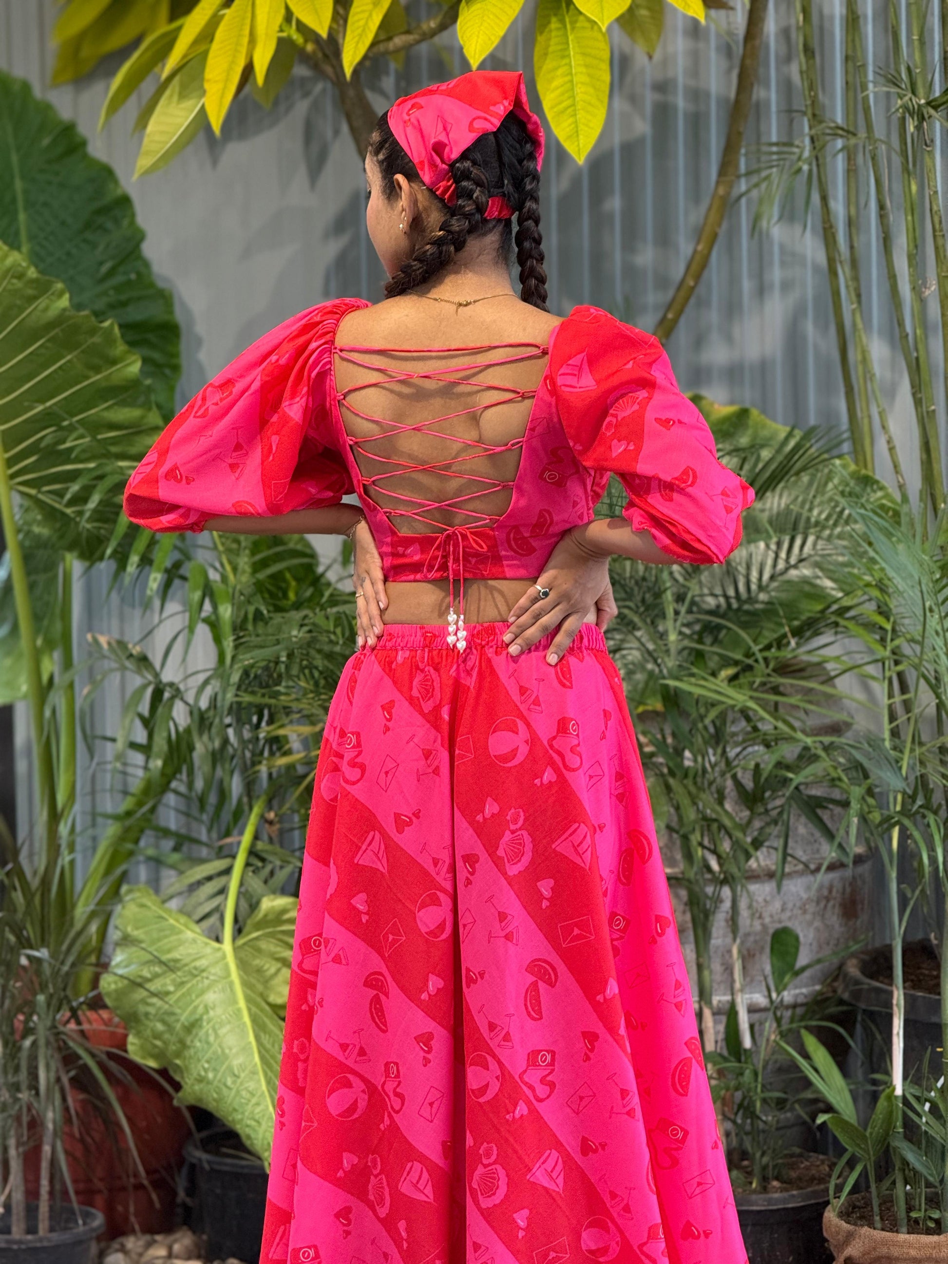 Carnival Lace-Up Crop & Umbrella Skirt Set – Coral & Fuchsia