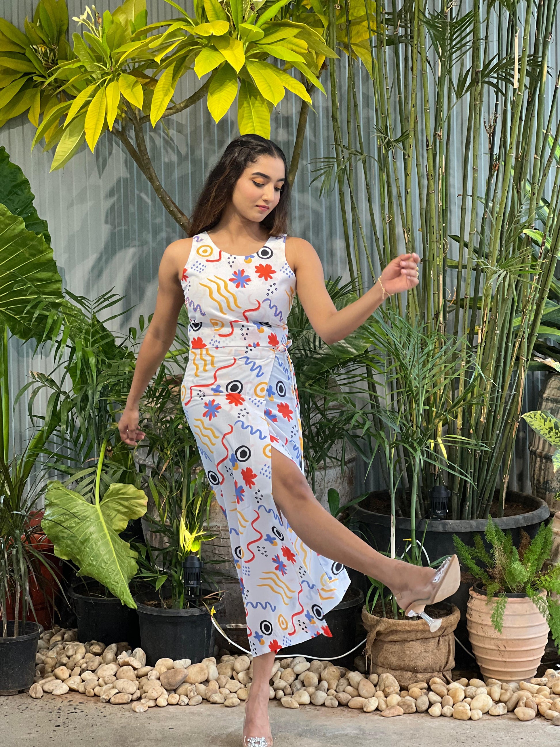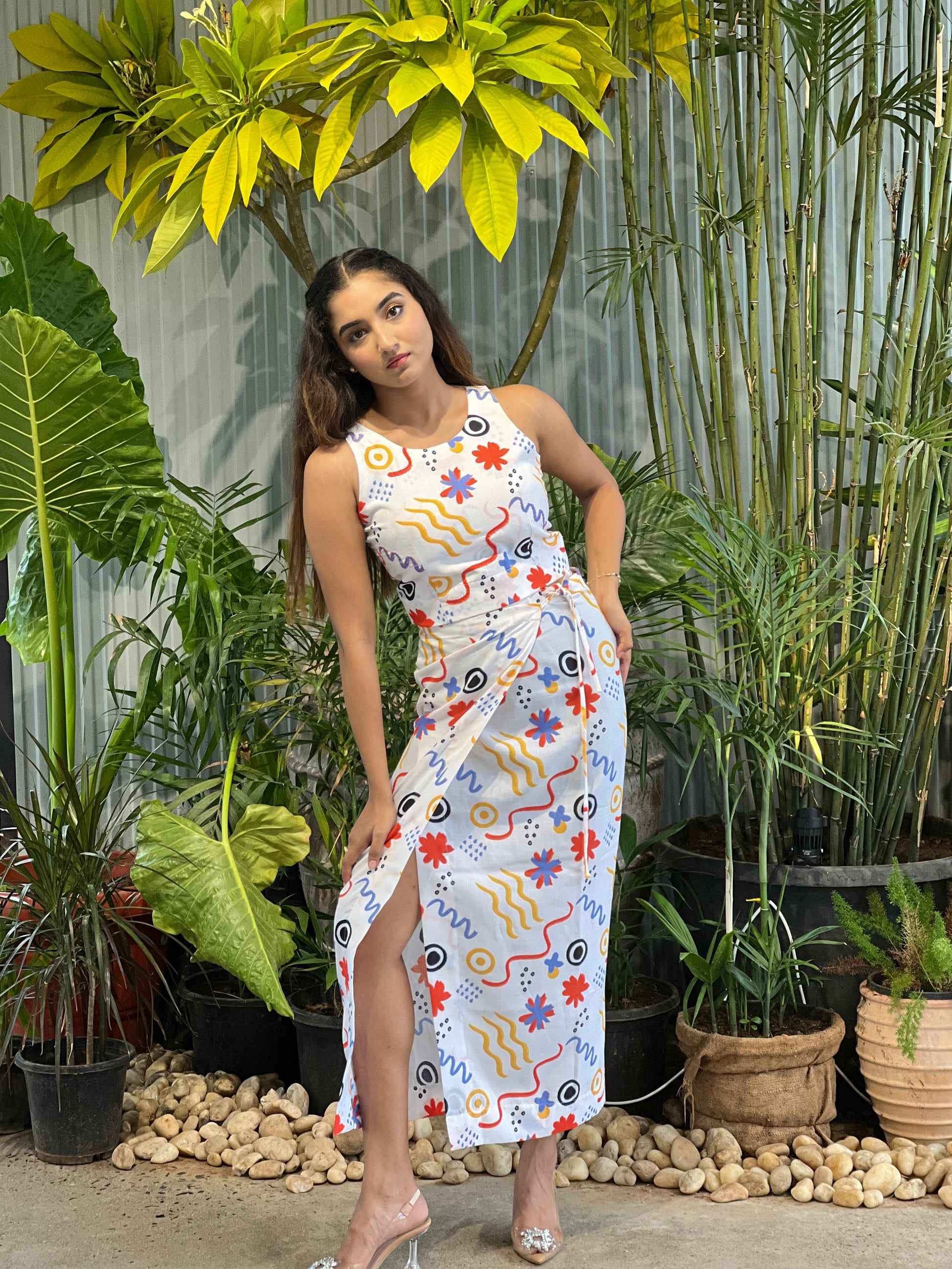 Style it with delicate rings, clear heels, and a sleek clutch. Add a soft messy bun and bold lip to elevate your evening resort vibe.
